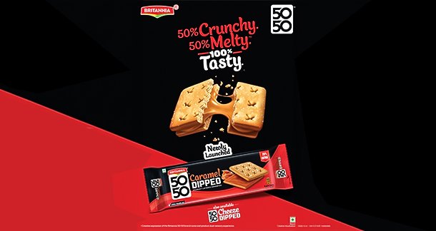 Britannia 5050 Caramel Dipped and Cheeze Dipped Crunchy Layered Sandwich is currently available across select cities at leading retail outlets and Q-commerce platforms.